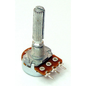 Hi ha potenciòmetres de tantes grandàries, formes i colors com pugueu imaginar, però al final són una resistència fixa d’un valor donat (10 kΩ en el nostre cas actual) i un mecanisme que permet desllisar un dial conductor sobre aquesta resistència, que ens permet prendre una part d’aquest valor.
