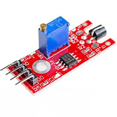 Interruptor sensible al tacto. Tocar el pin del sensor produce una salida en el pin ‘DO’. La salida no es una señal limpia, porque incluye señales inducidas por la red de 50 Hz (“zumbido de red”). La señal de salida es “activa alta” y la sensibilidad del circuito se puede ajustar con un potenciómetro. Una señal de salida analógica del sensor está disponible en el pin ‘AO’.